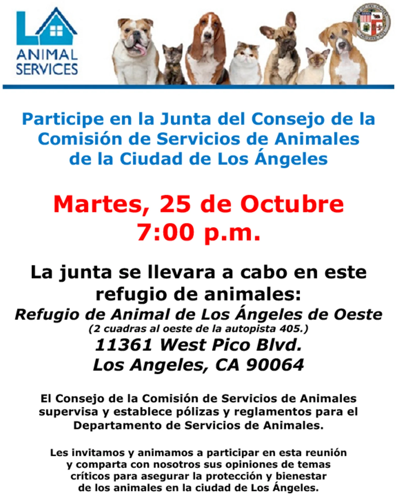 We encourage community members to attend the meeting and make their concerns regarding animal issues in the City of Los Angeles known directly to officials of the Animal Services Department.