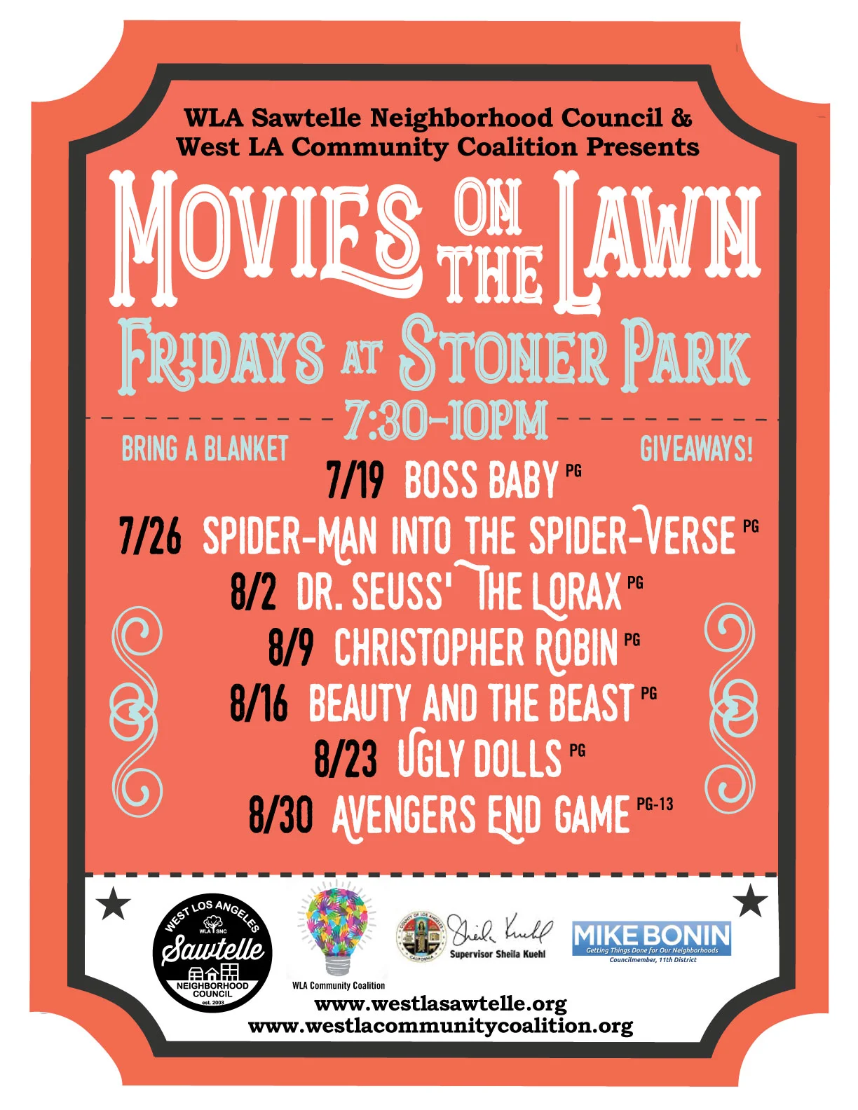 MOVIES ON THE LAWN - STONER PARK MOVIE NIGHT Friday, August 16, 2019 7:30 PM 10:00 PM Google Calendar ICS