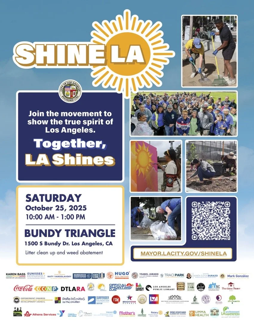 Bundy Triangle Collective is partnering with Mayor Karen Bass' office to bring her Shine LA initiative to Bundy Triangle this Saturday. We will meet as a group at Bundy Triangle and work together as a community to clean our neighborhood starting along Santa Monica Boulevard.